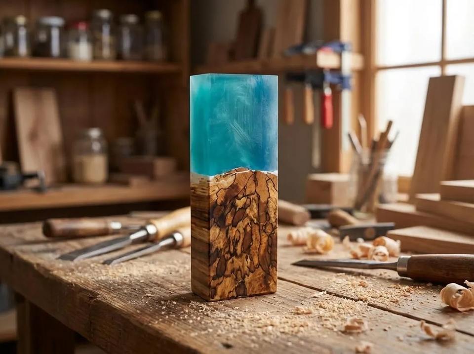 SAZ ENTERPRISES Bloc de manche de couteau personnalisé en bois et résine hybride pour la fabrication artisanale de couteaux de cuisine et de chasse