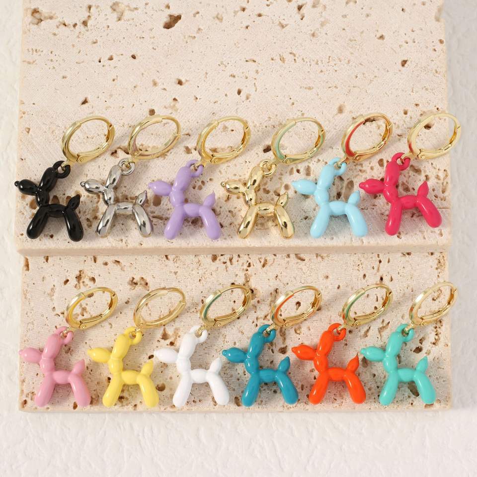 Bonbons couleur ballon rempli de gaz chien Dangle Hoop boucles d'oreilles pour les filles