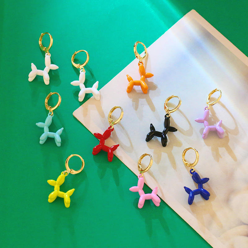 Nom du produit:Bonbons couleur ballon rempli de gaz chien Dangle Hoop boucles d'oreilles pour les filles
