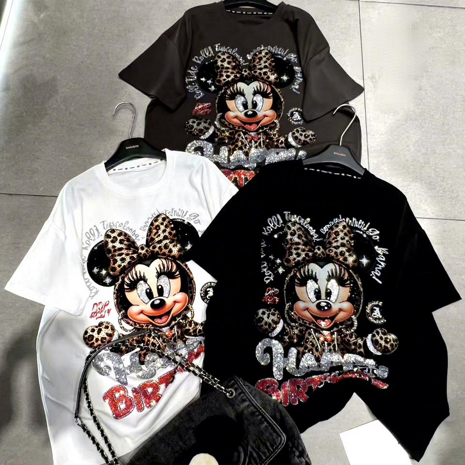 T-shirt long à rayures perlées chic pour femmes, mode printemps-été, nouveau, décontracté, à manches longues, brodé au crochet, motif de dessin animé