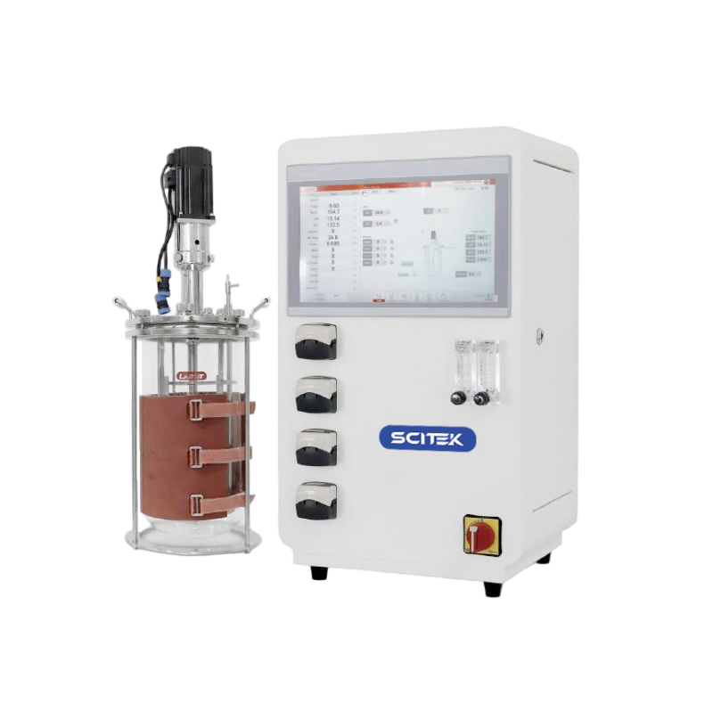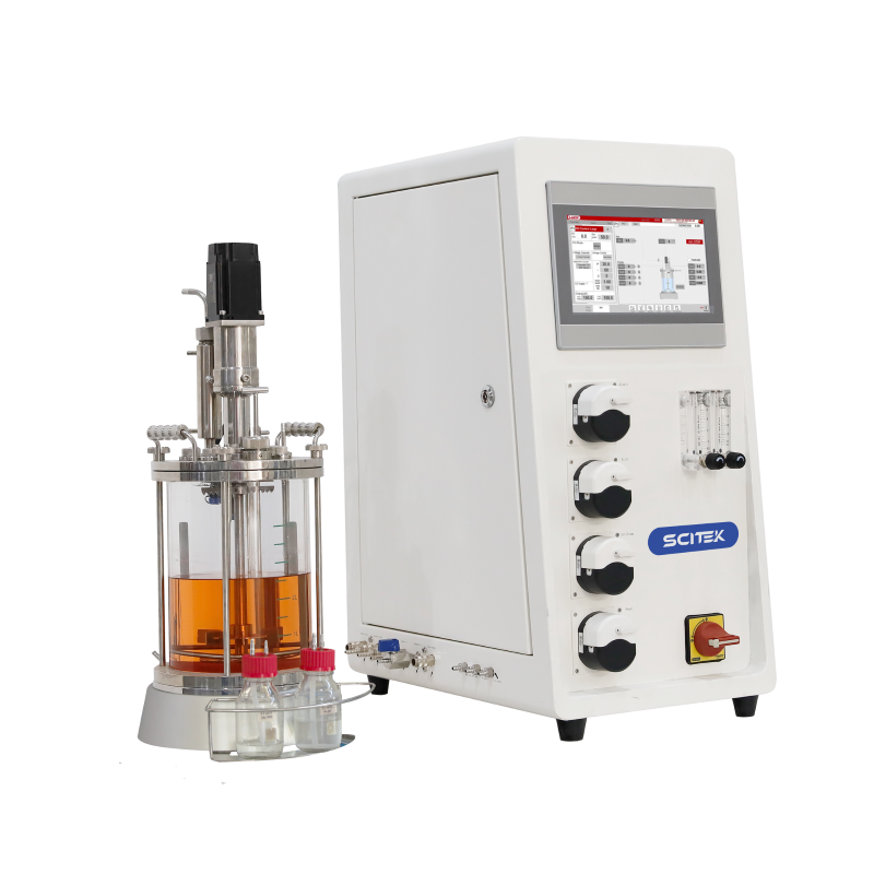 Bioréacteur SCITEK 1/2/3/5/7/10/15L, contrôle haute précision, 2 rotamètres + 1 débitmètre MFC, source d'air et d'oxygène, plage de DO 0,0~150,0%