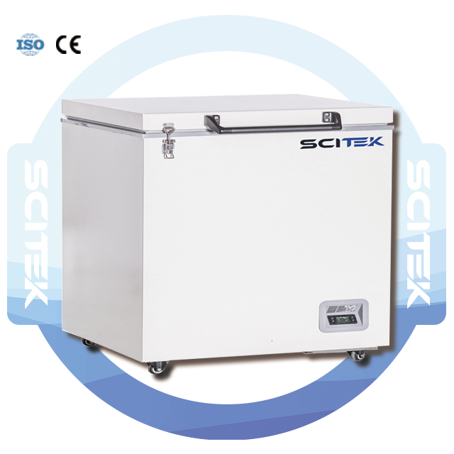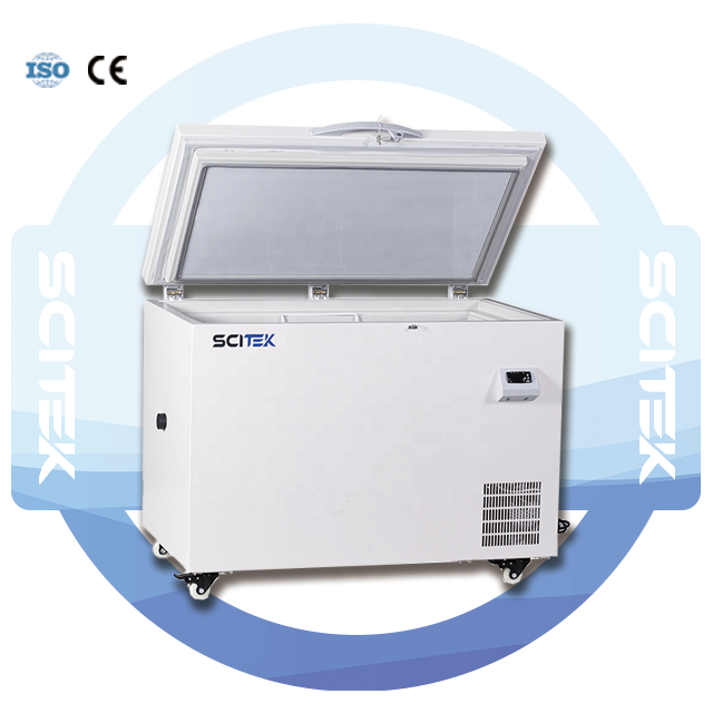 Congélateur coffre ultra basse température SCITEK -40C, dégivrage manuel, 220/420L, acier inoxydable, capteur PTC, contrôleur à microprocesseur, laboratoire