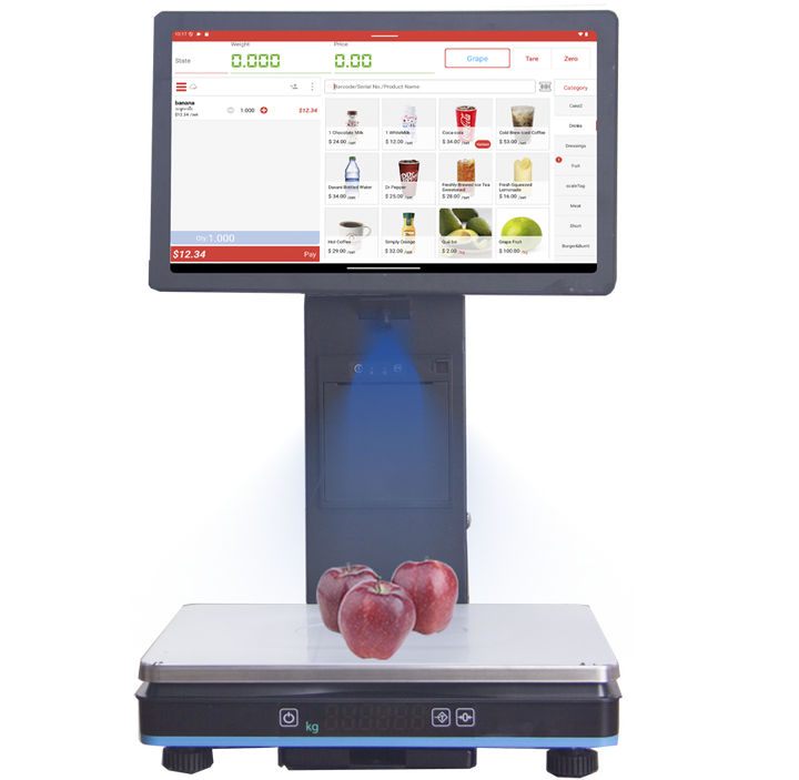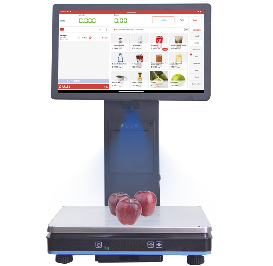 Balance tactile SCPOS AI-1 pour supermarché, balance de pesage, reconnaissance d'IA Win/Android, imprimante de reçus avec logiciel de point de vente