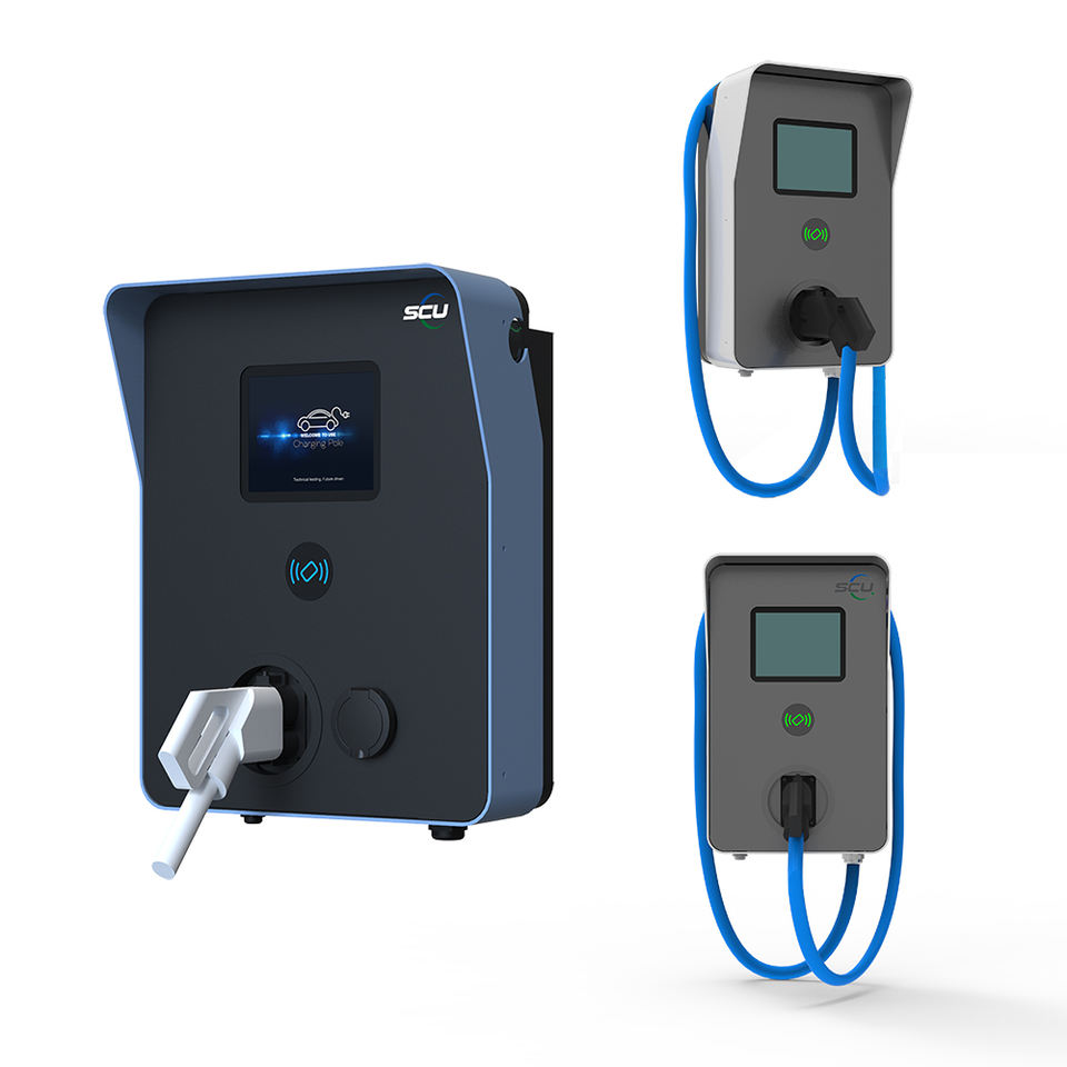 Station de recharge pour véhicules électriques triphasée SCU IP54, borne de recharge murale 30 kW pour usage commercial et résidentiel, installation facile