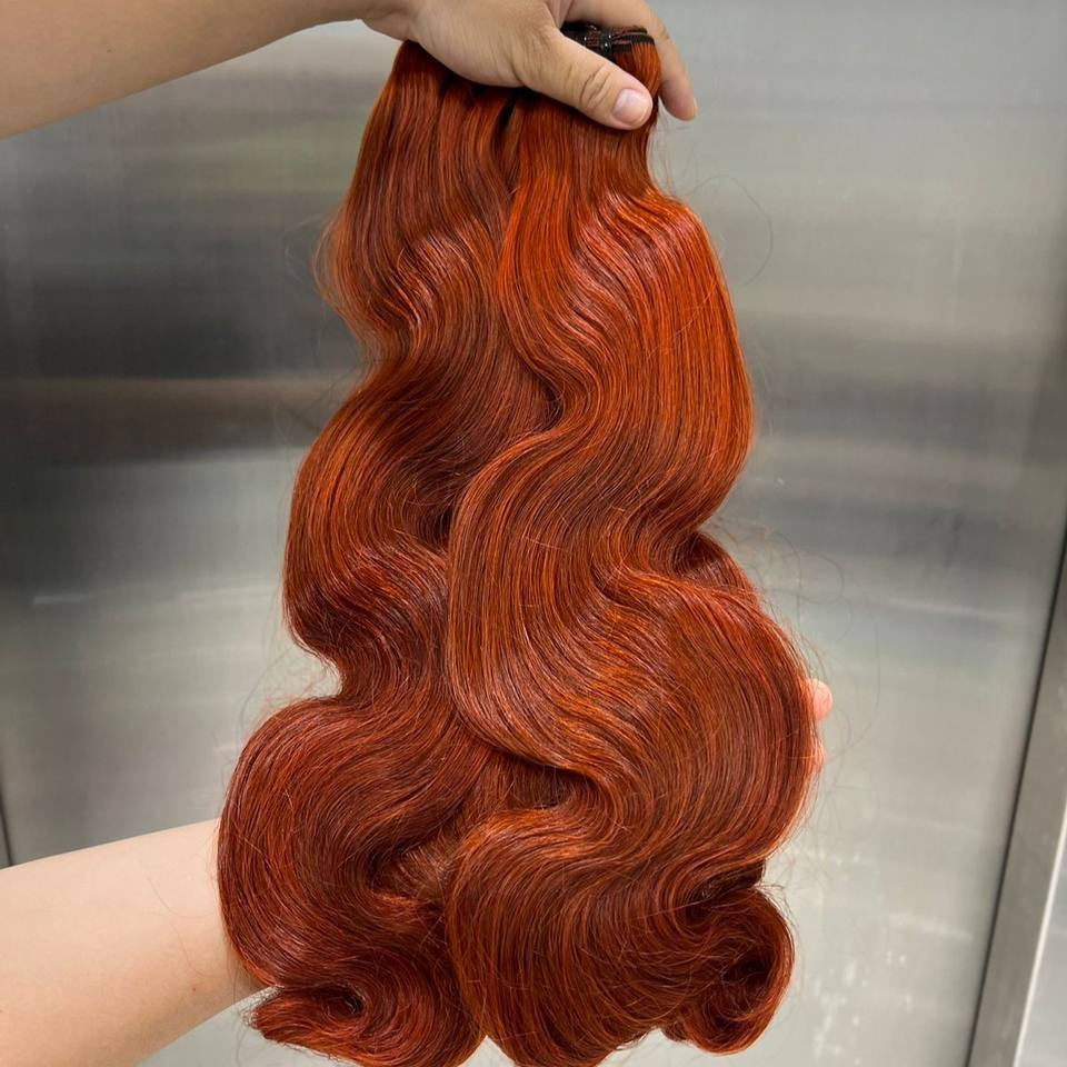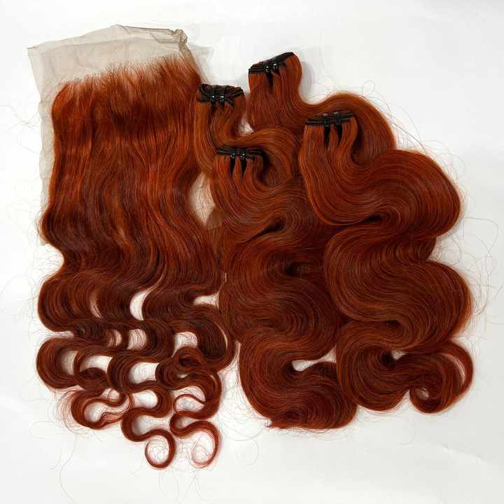 SDD BODY WAVE BUNDLES and CLOSURE LIGHT ORANGE HOT COLORS RAW MATERIAL VIETNAMESE HUMAN HAIR EXTENSIONS