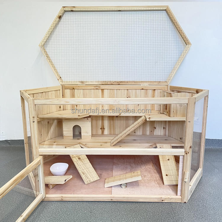 SDHC001 Maison pour animaux de compagnie en bois de luxe moderne et écologique, grande cage pour hamsters avec fermeture à bouton pour hamsters, utilisation intérieure et extérieure