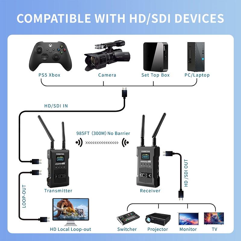 Kit émetteur-récepteur sans fil SDI HDM 4K pour la diffusion vidéo vers moniteur pour appareil photo reflex numérique sans fil