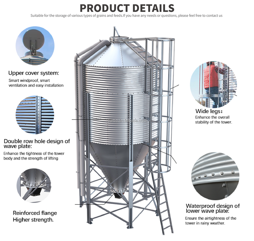 Silo de stockage de céréales pour élevage avicole SDROD - Capacité personnalisable de 5 à 15 000 tonnes, certifié ISO, haute efficacité, galvanisé à chaud numérique