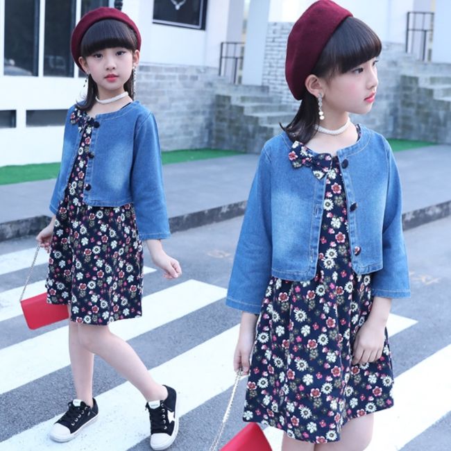 Ensembles de vêtements pour bébés filles SE3199, robes en coton à fleurs pour enfants, veste en jean, vêtements pour enfants en gros, robes