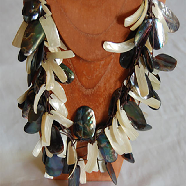 Collier géométrique en coquillages SEASHELL JEWELRY, perles noires avec Tectus