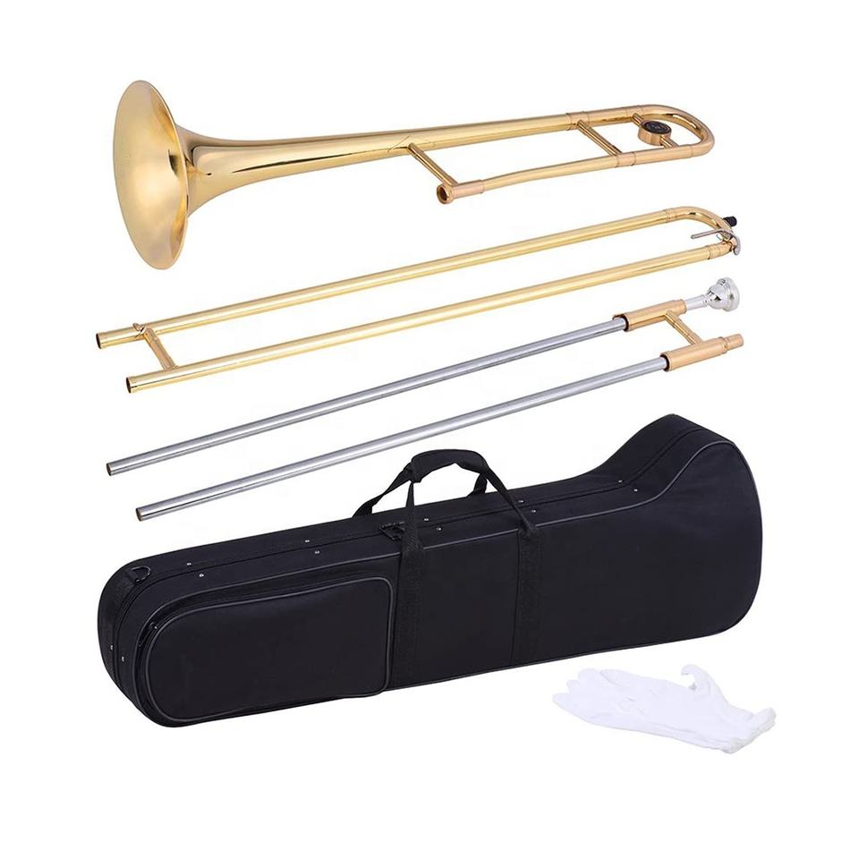 SEASOUND OEM Trombone ténor doré de style plat JYTB504 BB Tone en laiton Instrument de musique