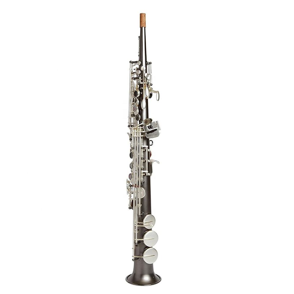 SEASOUND OEM Saxophone soprano professionnel monobloc JYSS111DBNSMT en noir nickel argent mat avec ton BB