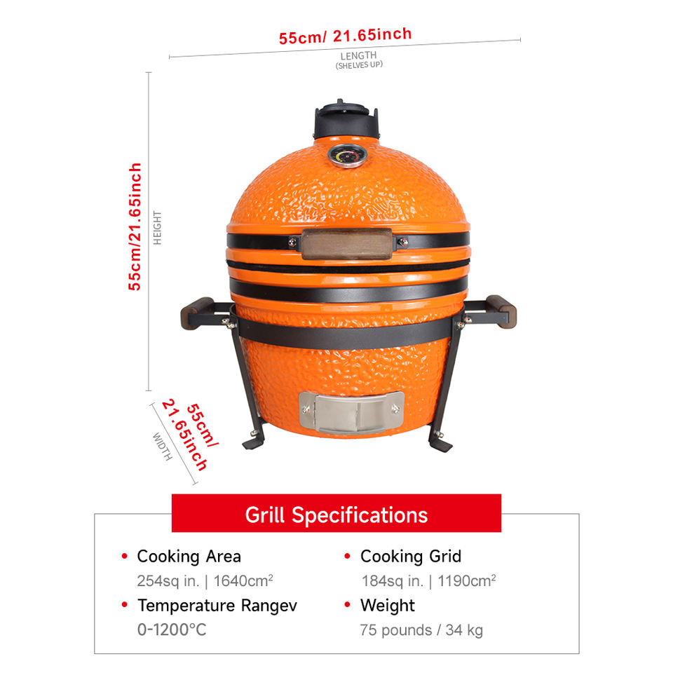 Barbecue au charbon de bois SEB KAMADO 16 pouces pour extérieur, finition émaillée en porcelaine, chariot, hauteur réglable, céramique noire, modèle AU-16M