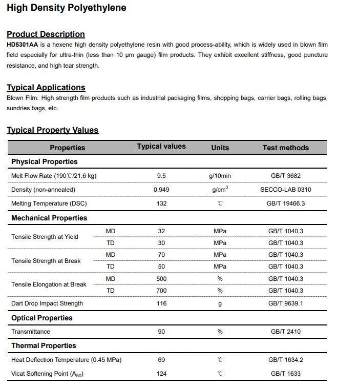 Model Number:HDPE HD5301AA