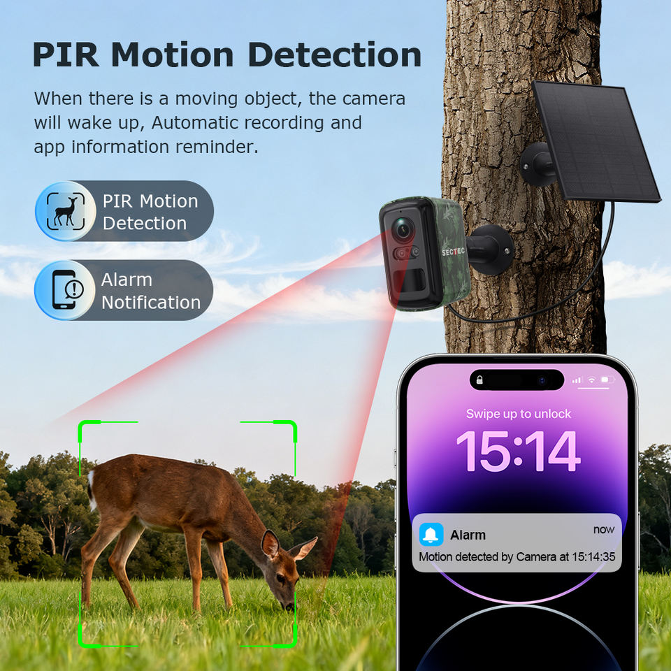 Caméra solaire miniature SECTEC personnalisée pour l'extérieur, camouflage, tir, batterie cachée, 3MP, carte SIM 4G, Wifi, batterie solaire, PTZ