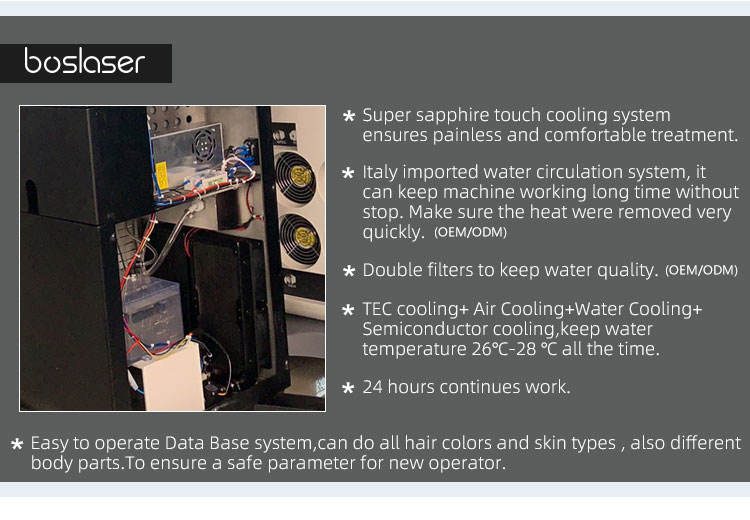 Système de refroidissement:L'eau + air + semi-conducteur + contact de saphir