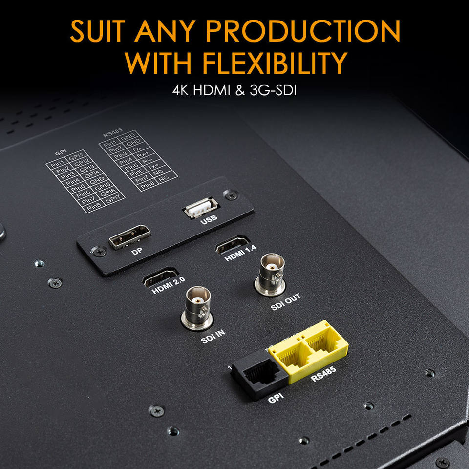 3G-SDI, HDMI 2.0, HDMI 1.4, RS485, GPI, USB, DP (DisplayPort)