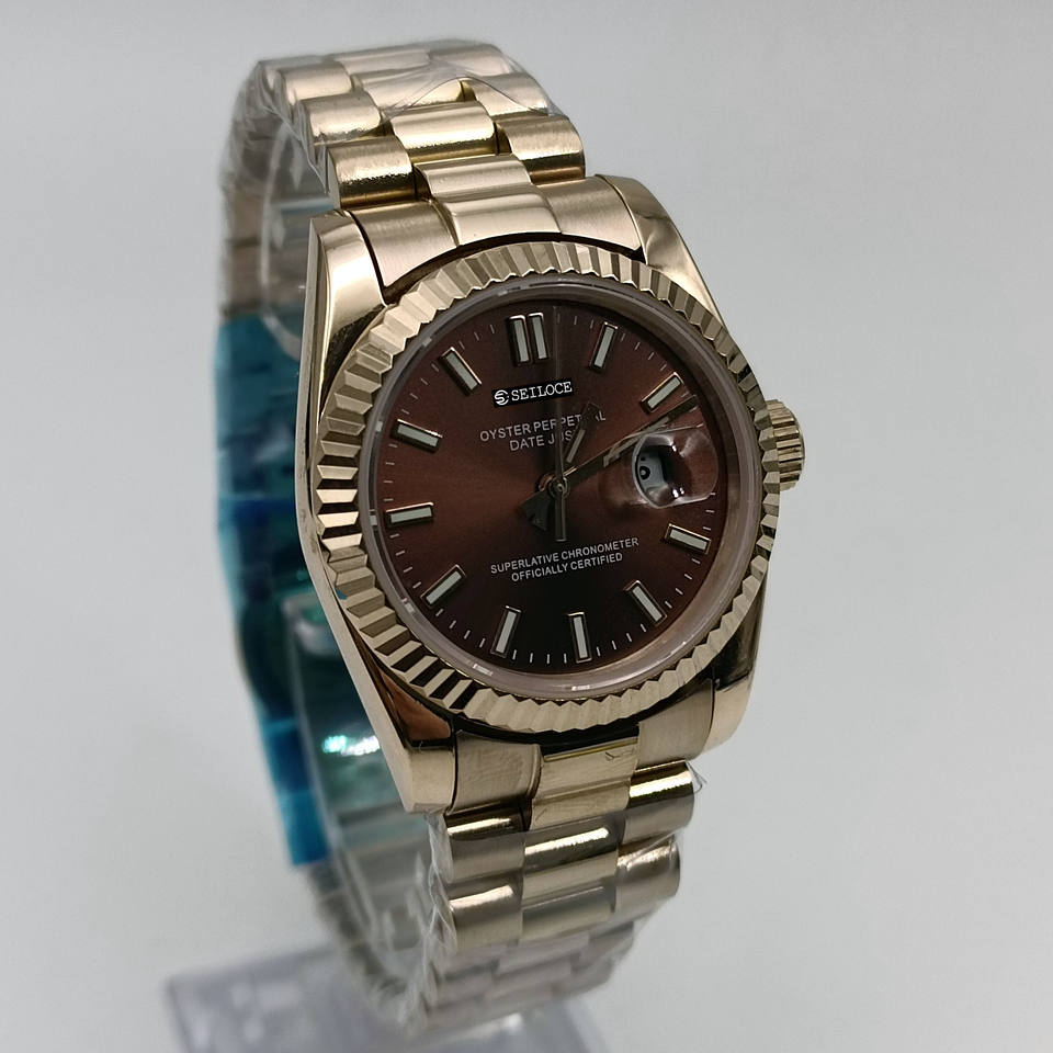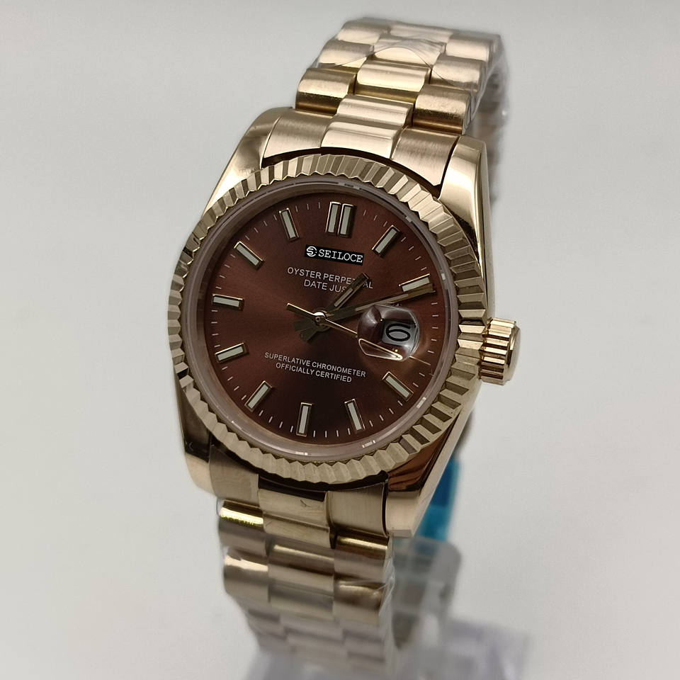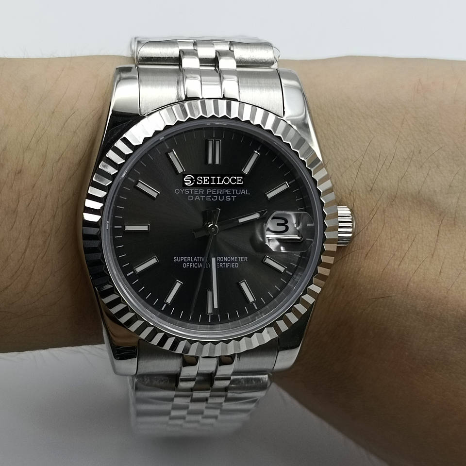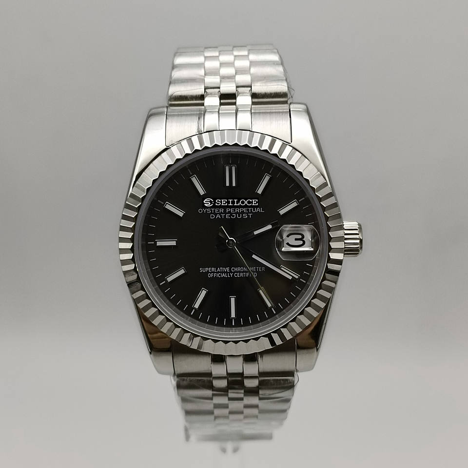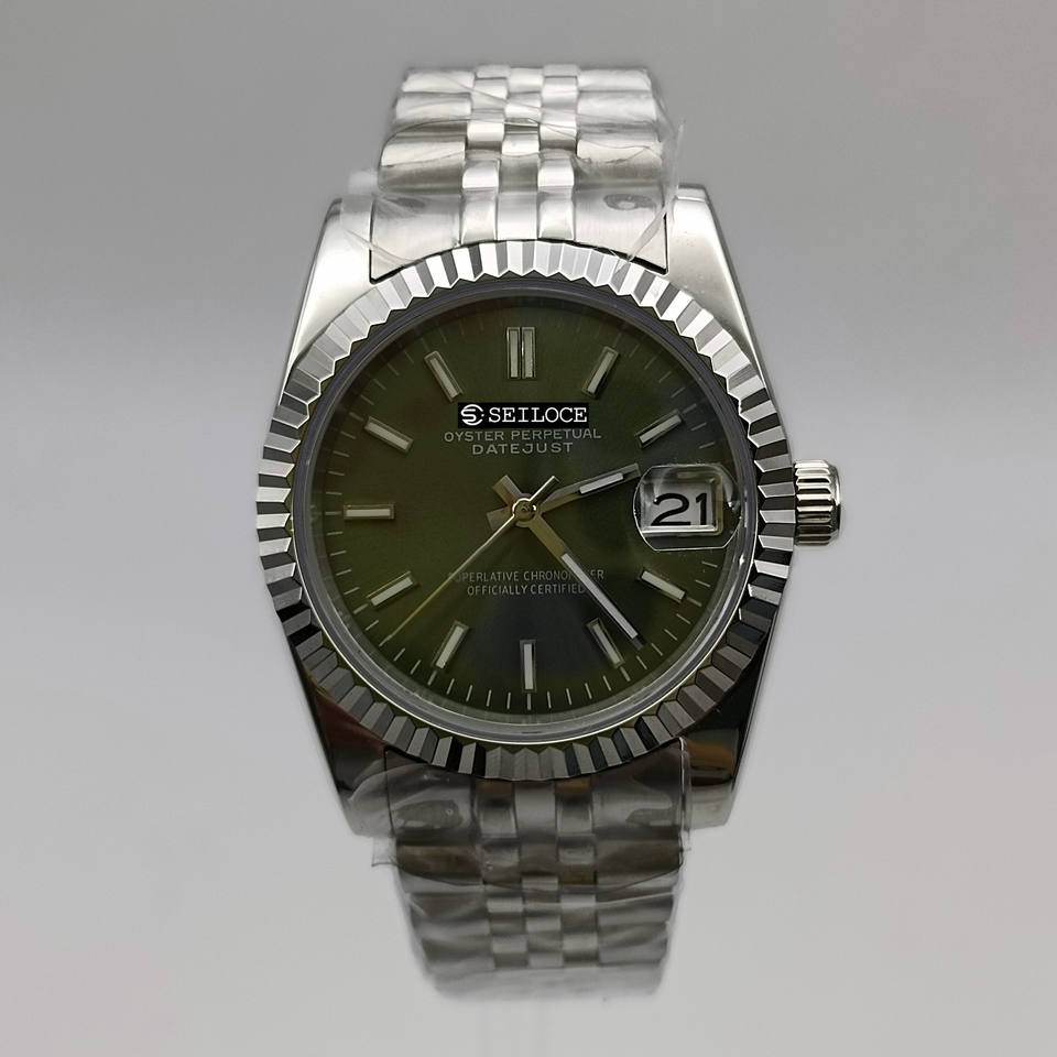 Montre chronographe mécanique automatique SEILOCE avec mouvement Nh35, acier inoxydable, luminescente, verre saphir, étanche