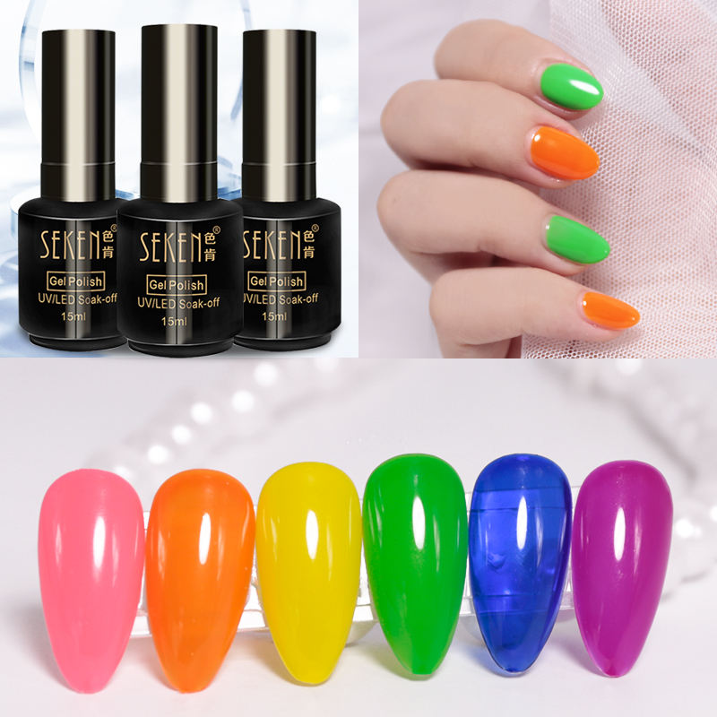 Vernis à ongles en gel UV SEKEN 15 ml, couleur néon, résine naturelle, inodore, vernis à ongles en gel UV à faire tremper, pour salon de manucure