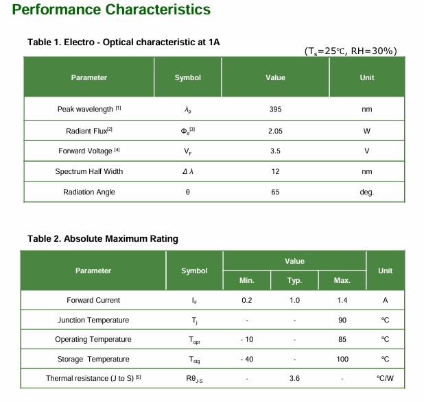 La température de couleur:365-420nm