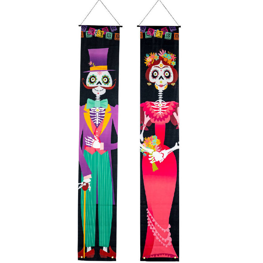 LOT DE 2 BANNERS EN TISSU TÊTES DE TROUSSARDS MEXIQUIENS 180X30CM
