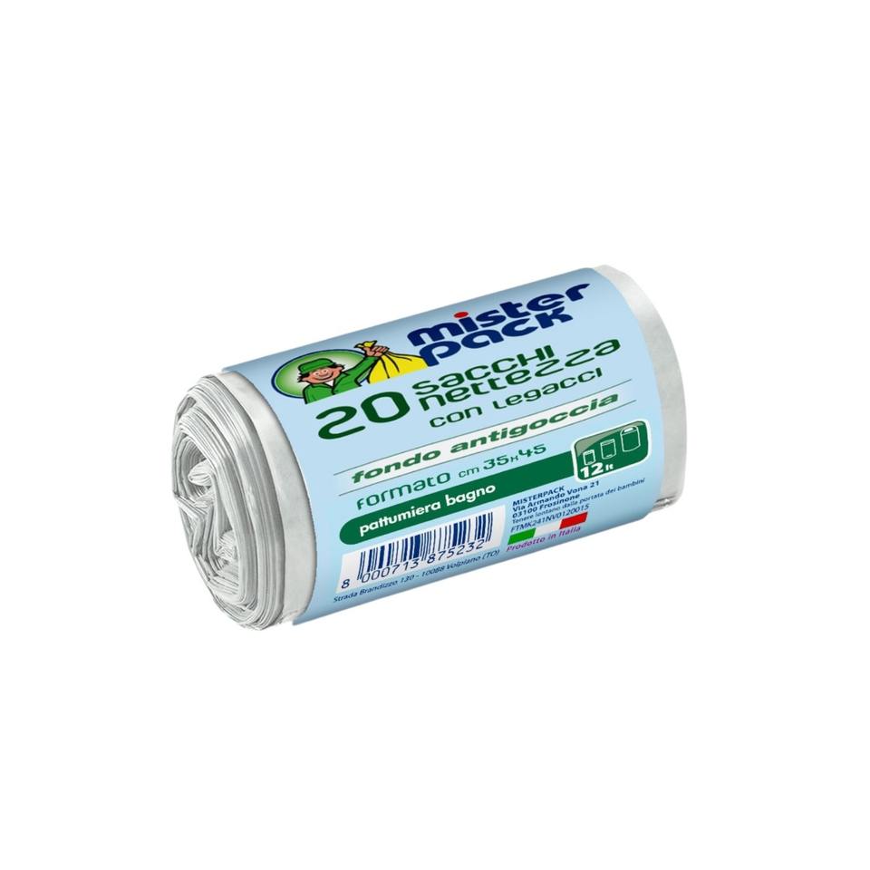 LOT DE 20 SACS À DÉCHETS TRANSPARENTS MISTERPACK 35X45CM 12LT