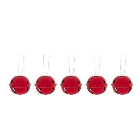 ENSEMBLE DE 5 SIFFLOTS EN MÉTAL ROUGE POLI, DIAM. 5CM