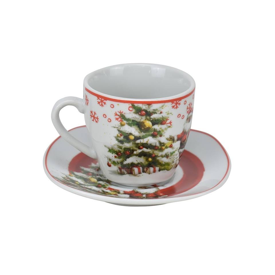 ENSEMBLE DE 6 Tasses de 90 ml avec soucoupe carrée et décoration sapin de Noël