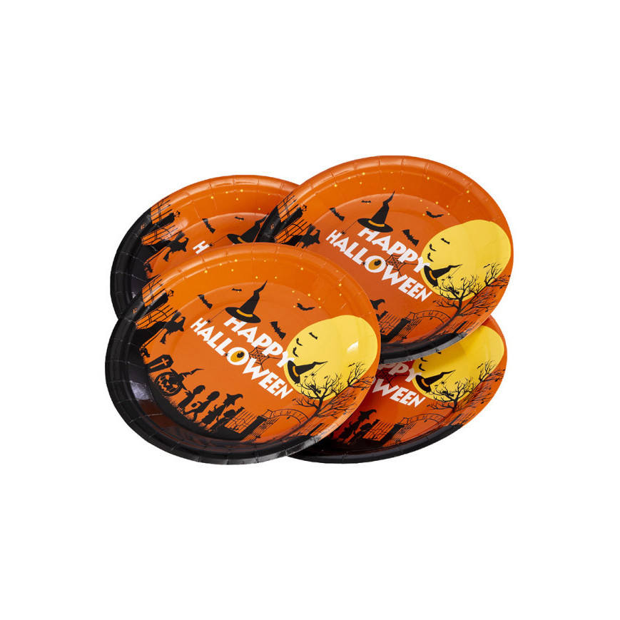 LOT DE 6 ASSIETTES EN PAPIER ORANGE POUR HALLOWEEN DIAM. 23