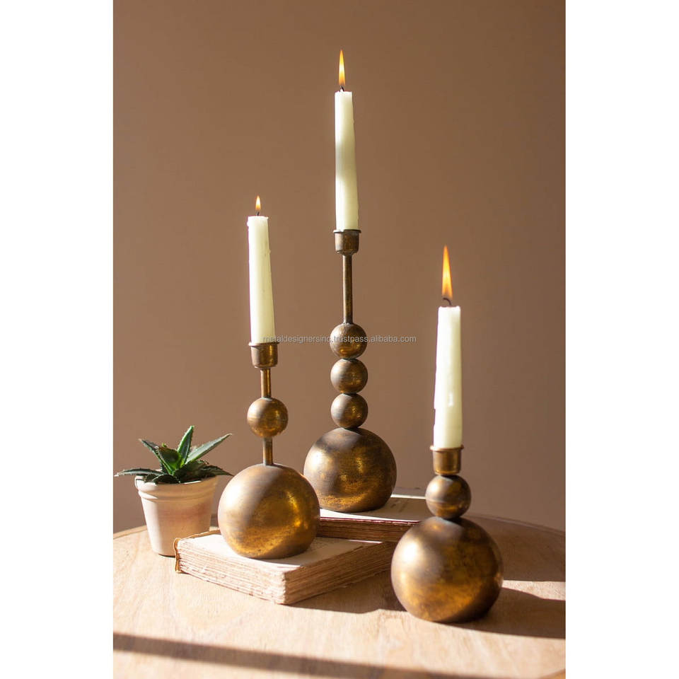 Nom du produit:ENSEMBLE DE TROIS BOUGIE-DÉCORANTS CONIQUES EN LAITON ANTIQUE
