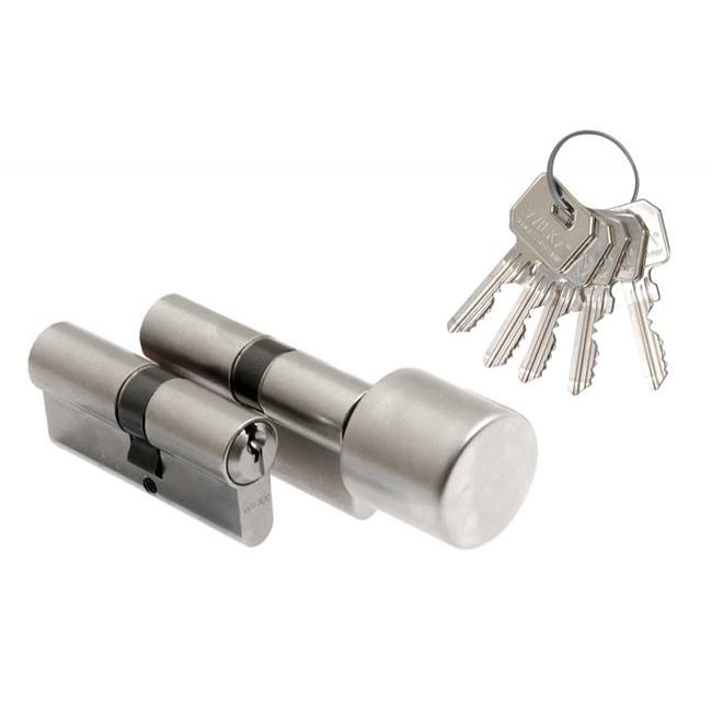 SET of Door Cylinders WILKA 1400 35/40 + 1405 40K/35 with Knob, Matte Nickel, 5 Serrated Keys, B Class