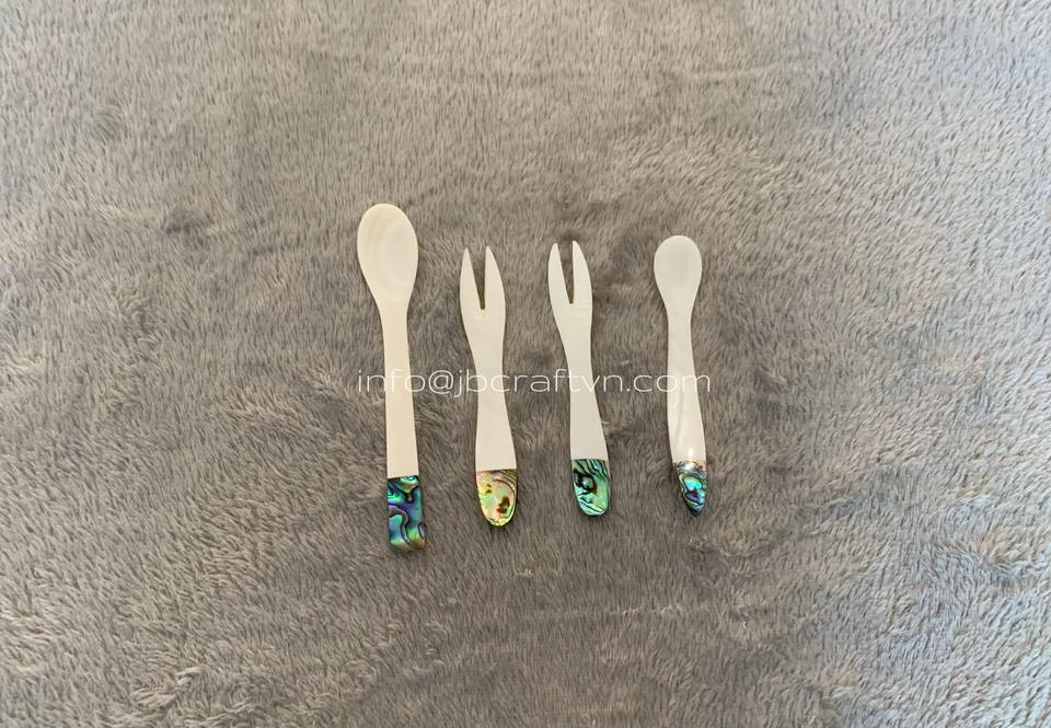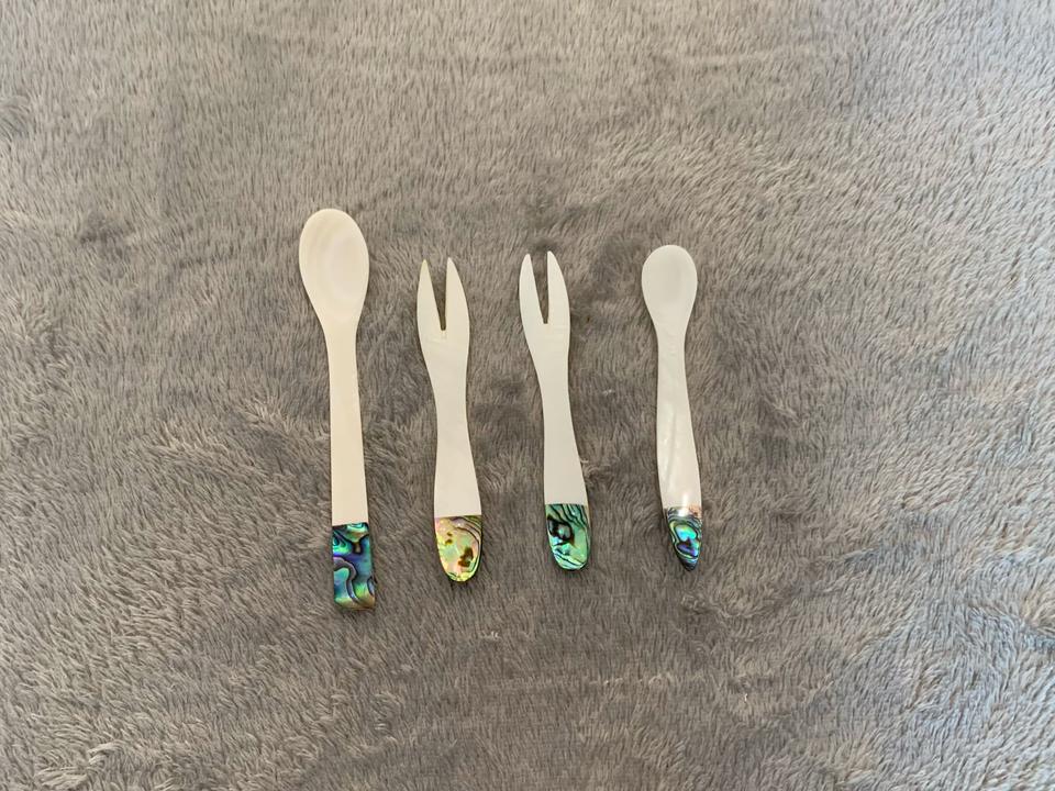 SET of Mother of Pearl Spoon, Caviar Spoon, Knife, Fork Size 10cm Handmade Vietnam