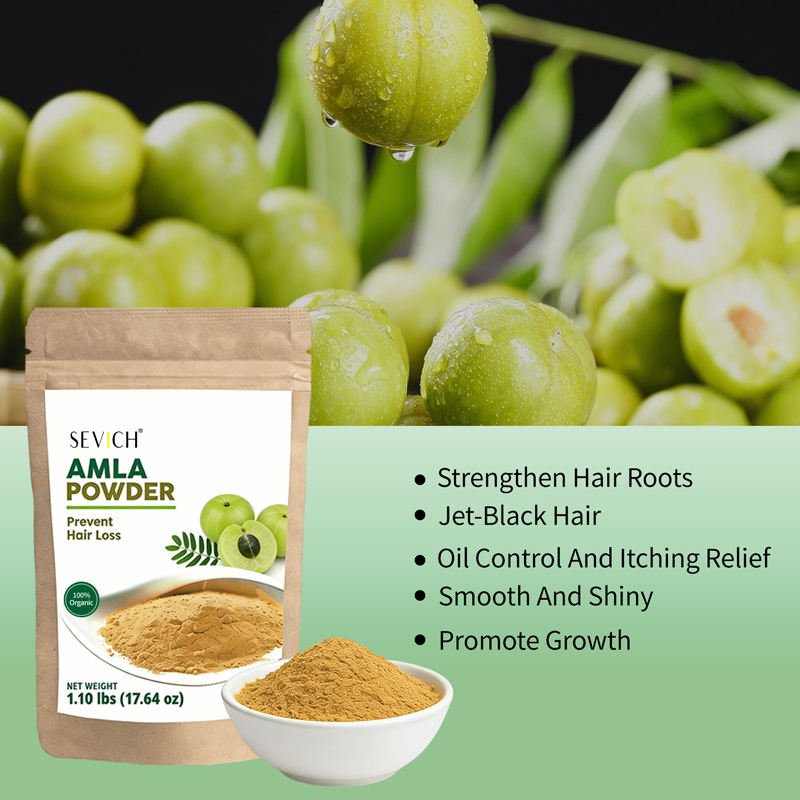 Poudre d'Amla SEVICH avec logo personnalisé, huile naturelle biologique pour contrôler le sébum, traitement anti-chute de cheveux, herbes ayurvédiques, poudre d'Amla pour la croissance des cheveux