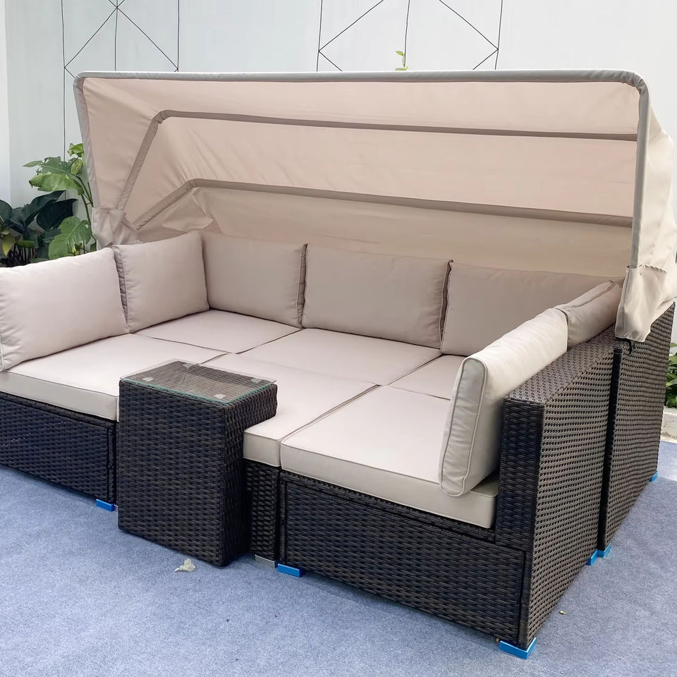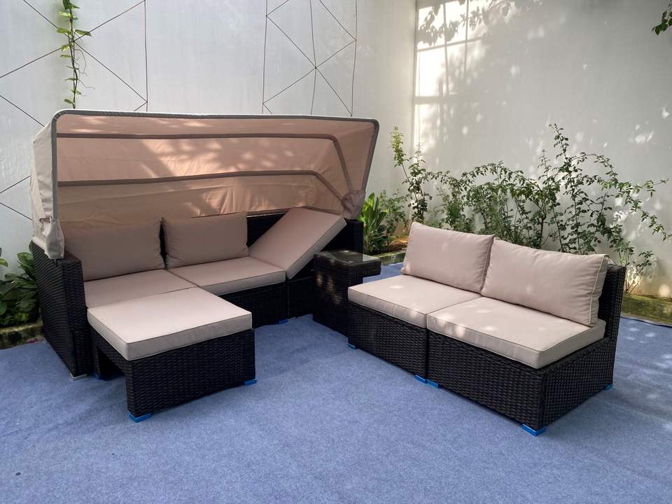 Rotin, acier, verre trempé, coussin en polyesterMatériel