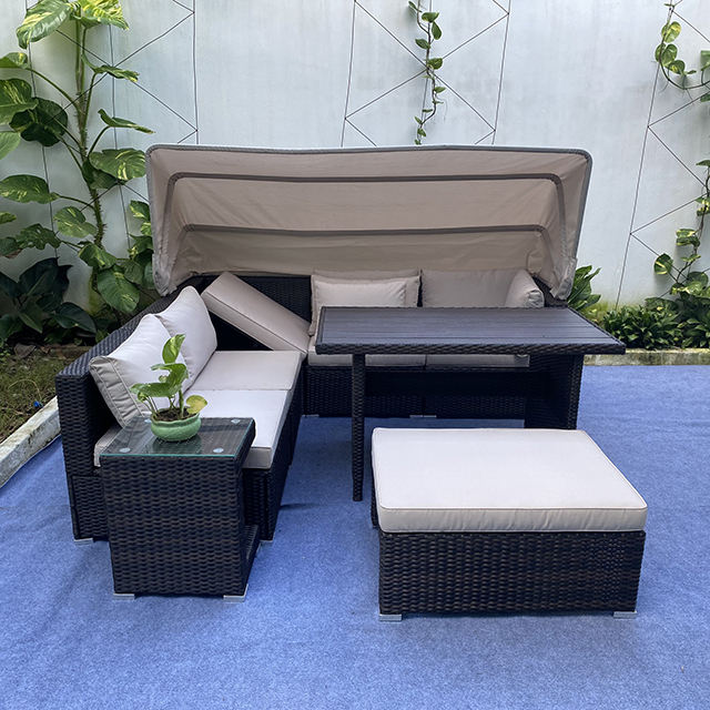 SF00008 Chaise d'extérieur contemporaine en rotin PE Ensemble de terrasse de jardin avec auvent pour l'utilisation du parc