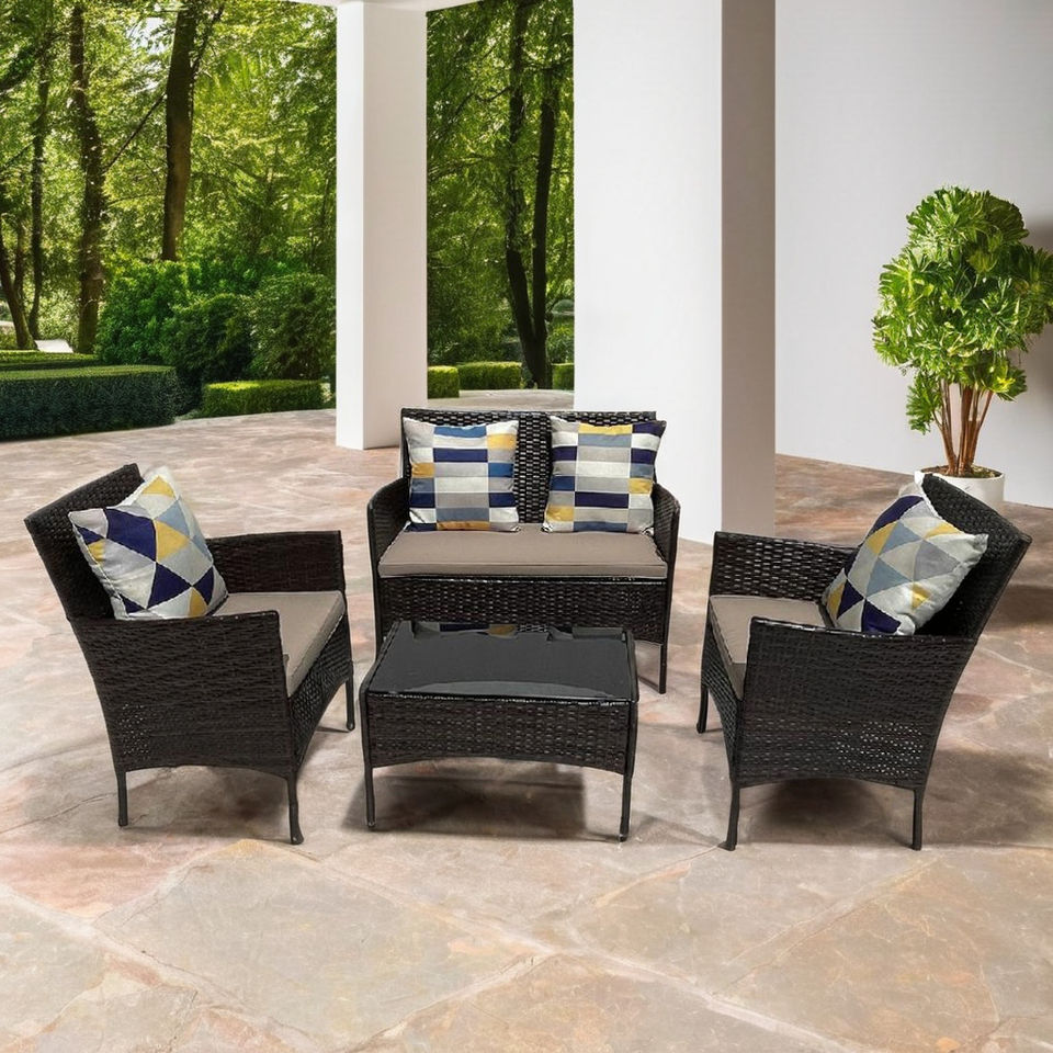Rotin, acier, verre trempé, coussin de polyesterMatériel