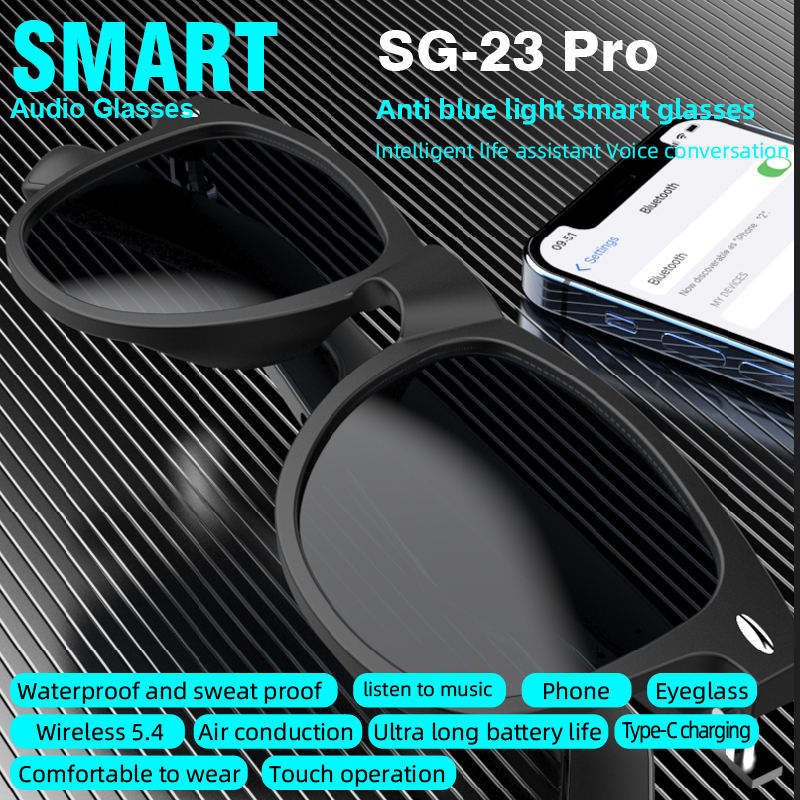 Lunettes intelligentes SG23 Pro AI avec WIFI intégré, enregistrement vidéo, traduction en temps réel, assistant vocal, charge Type-C