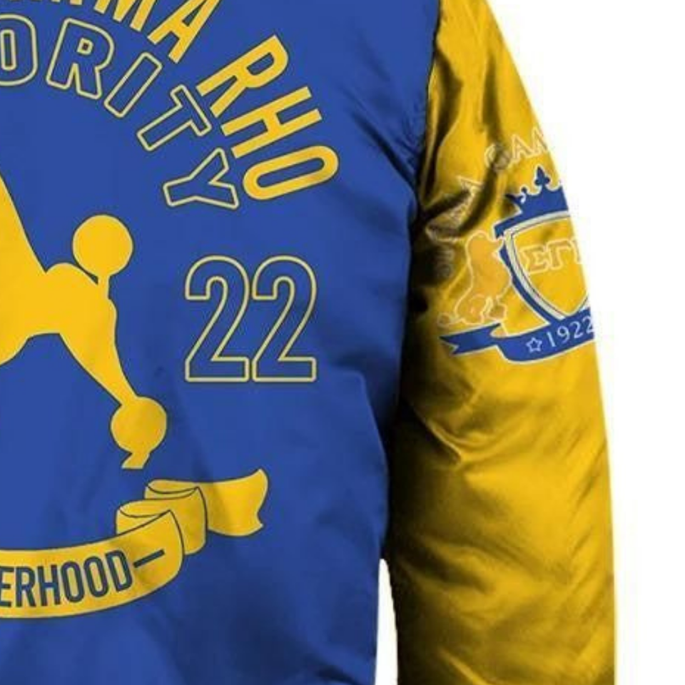 Veste universitaire en satin SGRho, Sigma Gamma Rho 1922, bleu royal et or, broderie grecque, mode féminine
