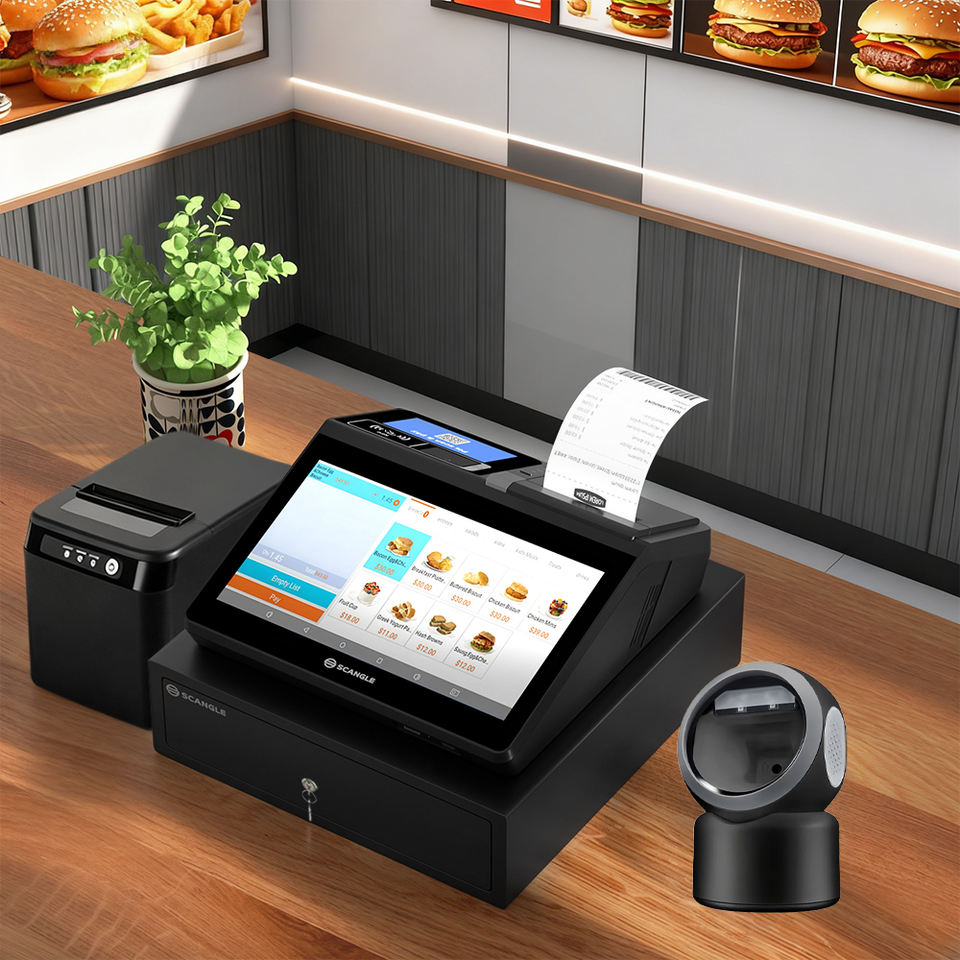 Systèmes de caisse enregistreuse POS SGT-116 et Android OS avec imprimante thermique de reçus et d'étiquettes à découpe automatique de 80 mm, machine POS