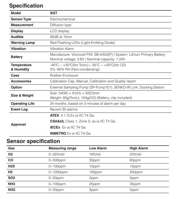 -40℃~+50℃(for Toxic) / -35℃~+50℃(for O2)