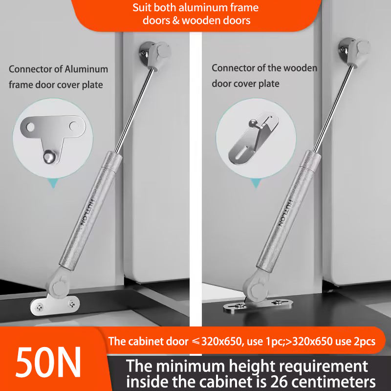 Amortisseur hydraulique à gaz SH-ABC de couleur gris argenté, à rotation vers le bas, 50N, pour armoire en bois