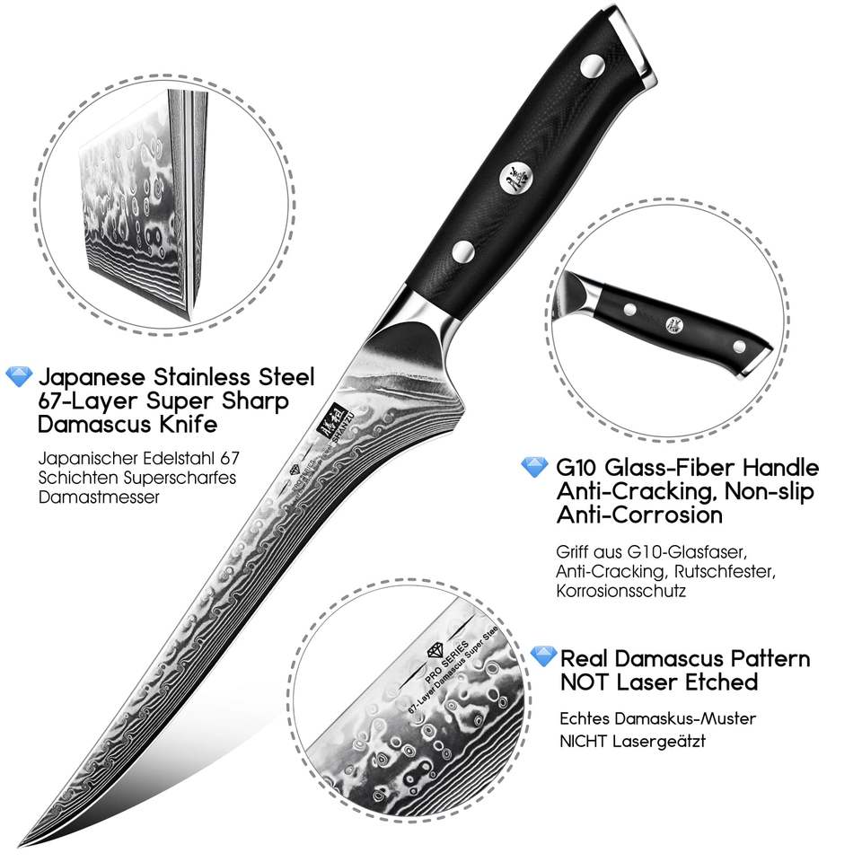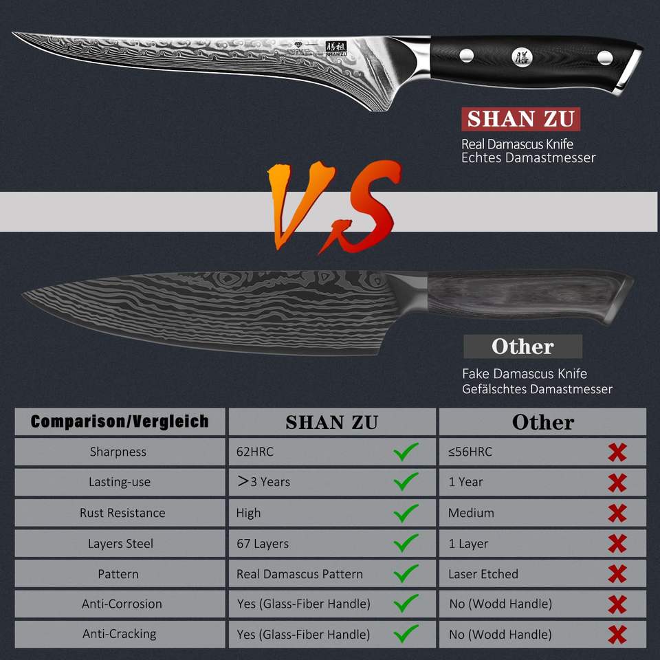 SHAN ZU 7 pouces couteau à filet japonais en acier damas couteau à désosser professionnel tranchant en acier à haute teneur en carbone cuisine couteau utilitaire