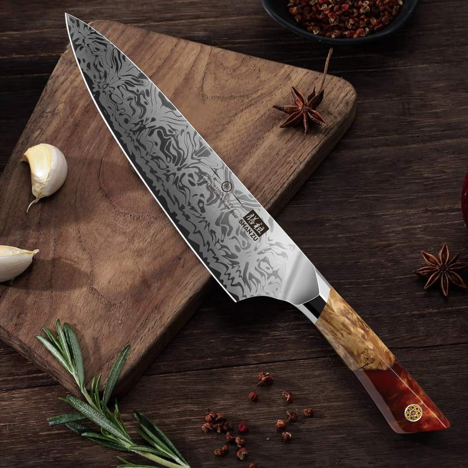 SHAN ZU couteau de cuisine damassé couteau de chef professionnel en acier en poudre SG2 forgé à la main 97 couches manche en érable en acier damas