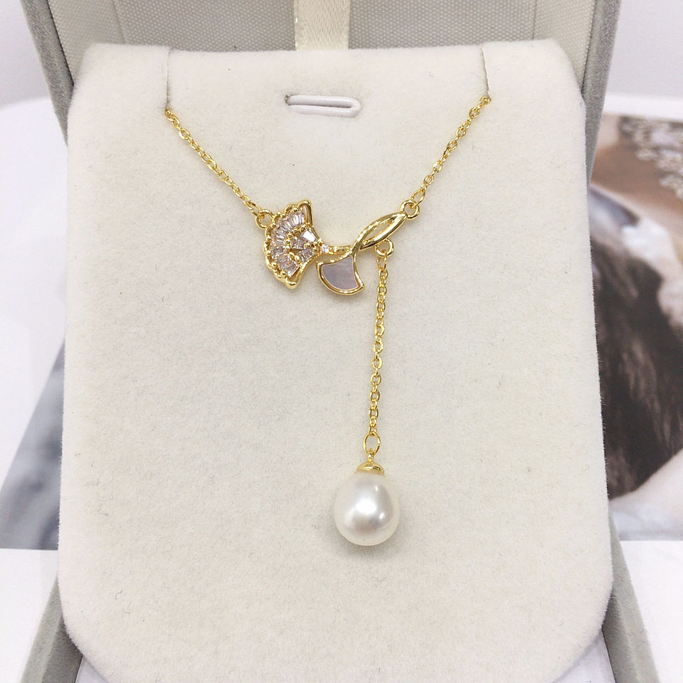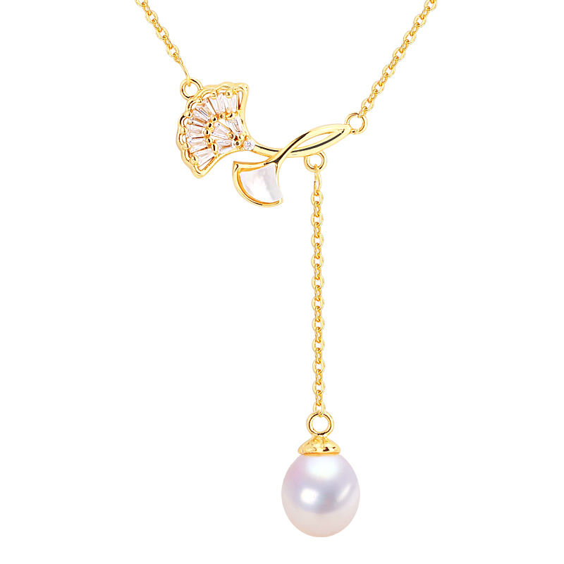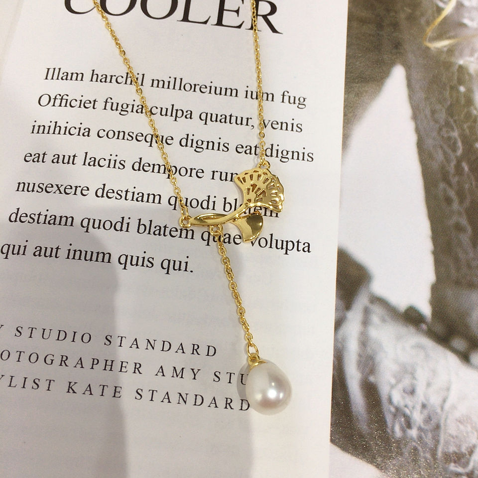 Collier en perles d'eau douce naturelles avec pendentif en forme de feuilles de ginkgo et coquillages, vente en gros SHDIYAYUN, bijoux pour femmes