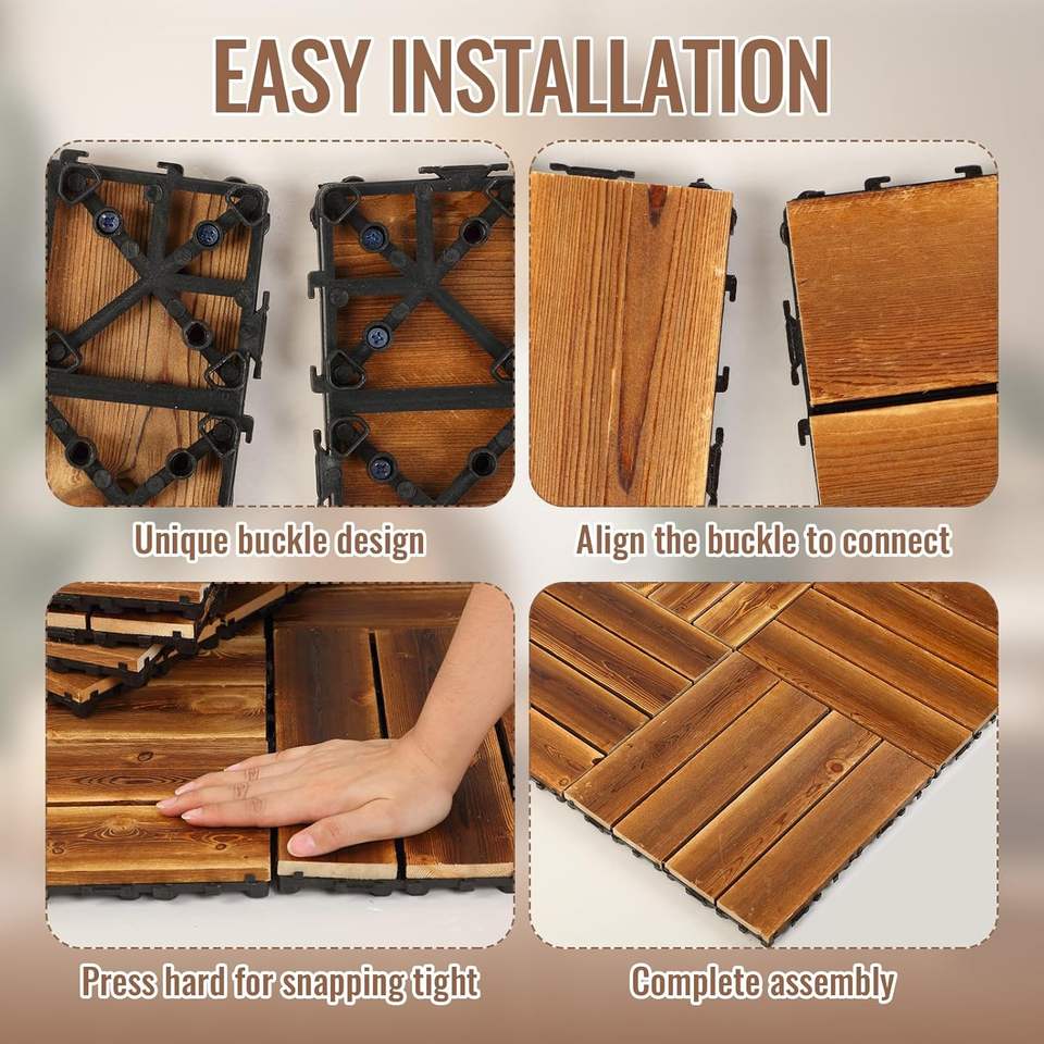 Dalles de terrasse en bois SHENGCHENG faciles à installer, pour l'intérieur et l'extérieur, carreaux de terrasse emboîtables carbonisés
