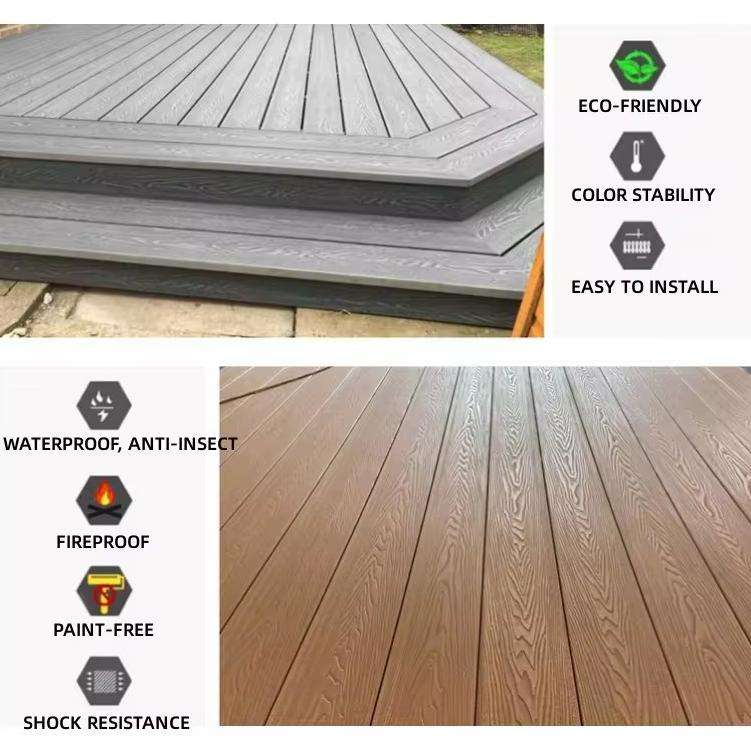 SHENGCHENG Wpc Revêtement de terrasse extérieur en composite à grain de bois 3D, texture bois-plastique