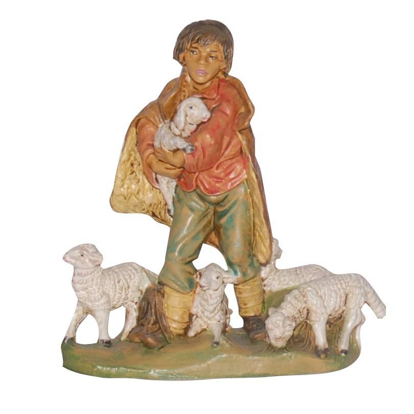 Pasteur avec moutons MOD. LUX EN PVC COLORÉ EFFET BOIS H 10CM