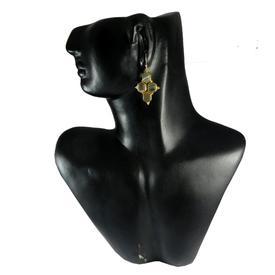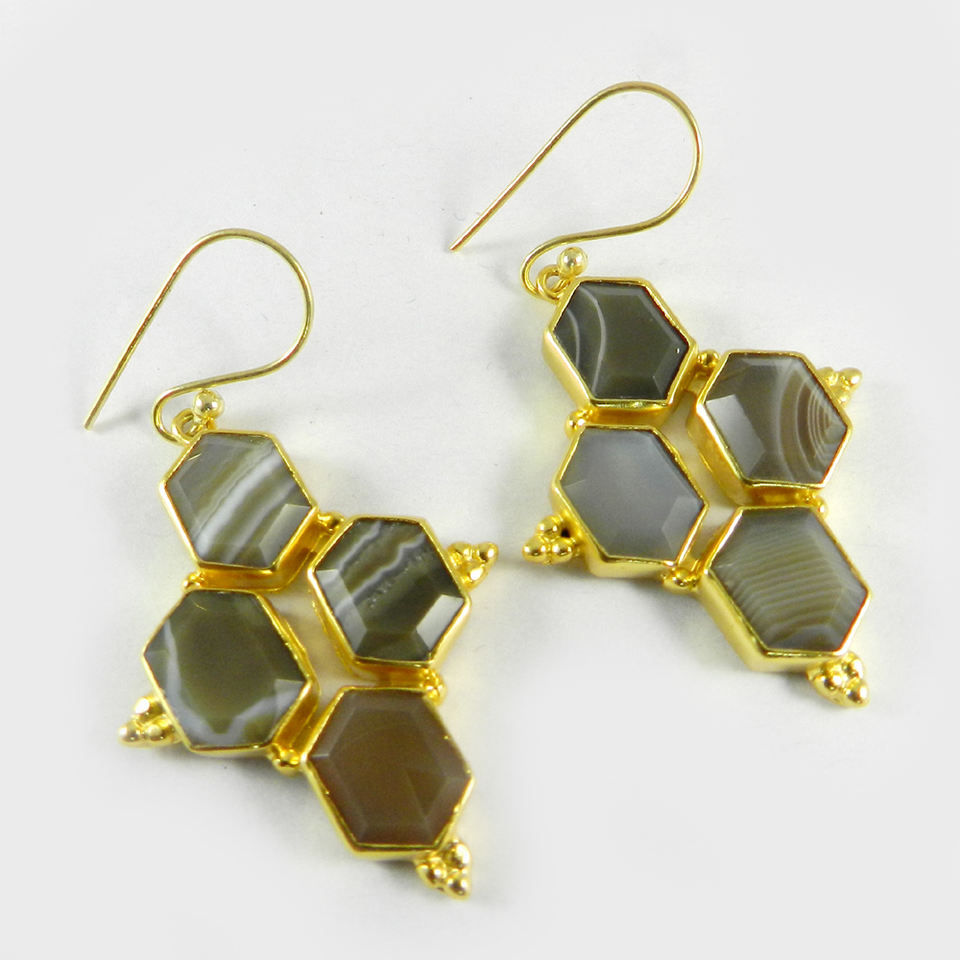 Boucles d'oreilles pendantes en agate du Botswana plaquées or faites à la main par SHILPI IMPEX, sertissage en bélière, tendance, mariage, fête, anniversaire, fiançailles, nouveauté