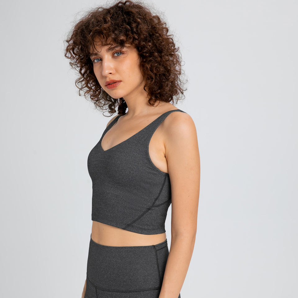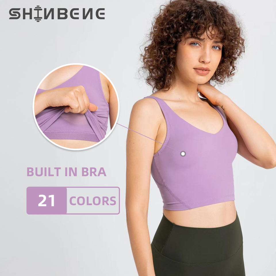 SHINBENE Logo personnalisé col en V Gym Yoga haut court soutien-gorge femme Sport entraînement débardeur grande taille avec soutien-gorge intégré