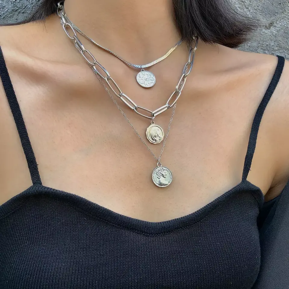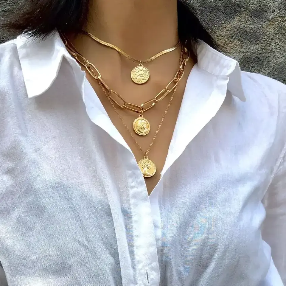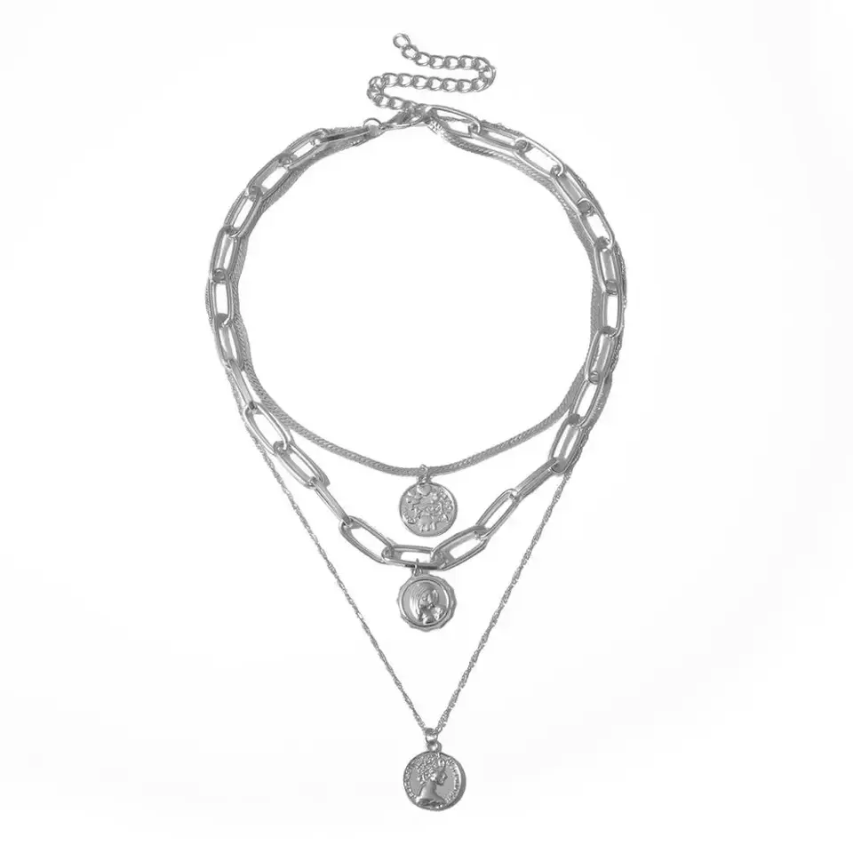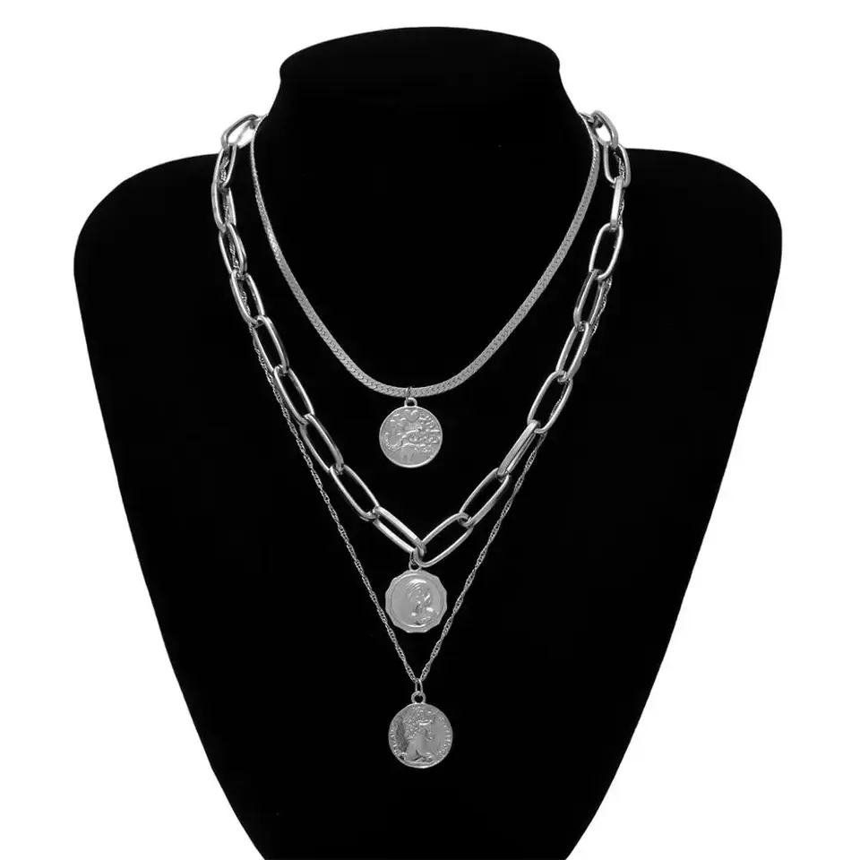 Shinin — collier Punk multi-rangs pour femmes, chaîne épaisse, vierge marie, ras du cou, pièces de monnaie sculptées, pendentif, bijoux
